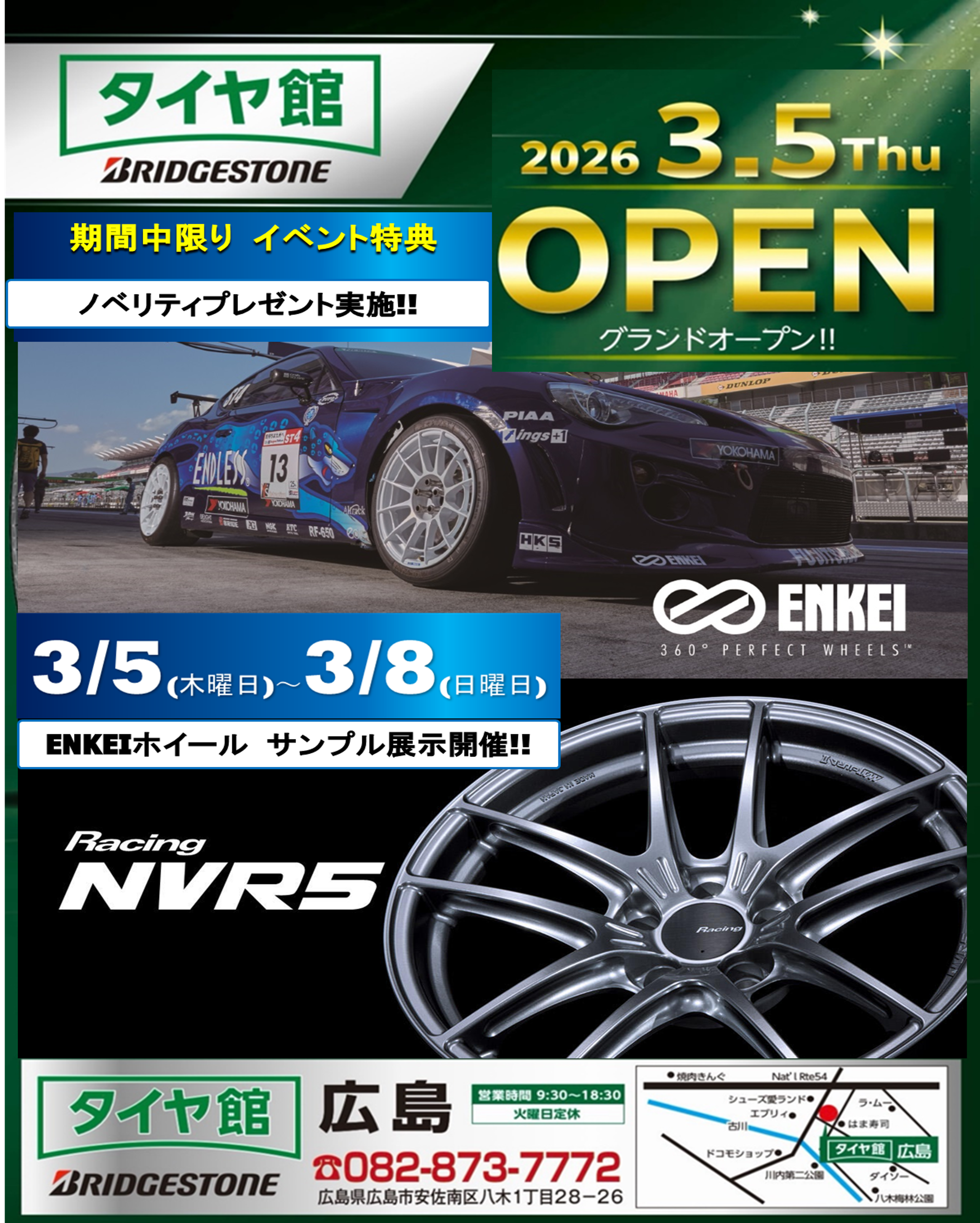 タイヤ館広島 様にて、【新店グランドOPEN ENKEIアルミホイール展示会・大商談会】が開催されます!