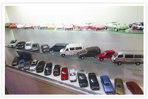 ご自宅の打ち合わせスペースには、ミニカーのコレクションが並ぶ。40代になってから目覚めたラリー参戦では、経験とコネクションを生かして最初から上級カテゴリーにチャレンジし続けている。