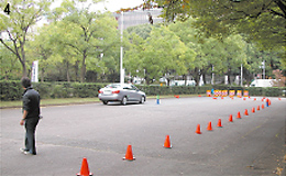 3.人気の縦列・バック駐車の講習コーナー。「コツはハンドルの回し方とタイヤの方向を理解すること。前輪の向きで前の位置をずらし車の向きを変えていくという考え方をすれば楽にできるんです。これが分かればワインディングも高速道路もサーキットも車庫入れも、全部上手くなります」。