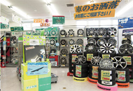 ファミリーやシルバー世代の客層が中心のため、ドレスアップ用品よりもデイリーユースの商品構成が特徴の「タイヤ館 富谷」。現在の売れ筋はやはりエコグッズ。店の入り口にあるエコグッズを並べたディスプレイは、タイヤ館のディスプレイ部門で銀賞に輝いた力作です。エコはもちろん、車両維持につながるメンテナンスとしてオイル交換に特に力を入れているそうです。「専門店は難しい説明をされそうで入りにくいと思われないように、まずは気軽にできるオイル交換で当店を知ってもらえれば良いなと思っています。また、お客様のお出迎えから、説明、お会計、お見送りまで同じスタッフが行います。タイヤ・ホイール、メンテナンスのコンシェルジュ的な店づくりを心がけていますね」と店長の早坂さん。