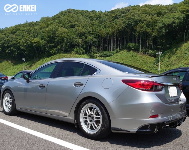 軽量化をテーマに、純正19インチを17インチへインチダウンしてみました。インチダウンしても映えるホイールということでRPF1に行きつきました。タイヤのファット感もノスタルジーの演出に繋がっています。