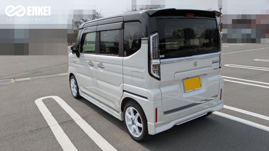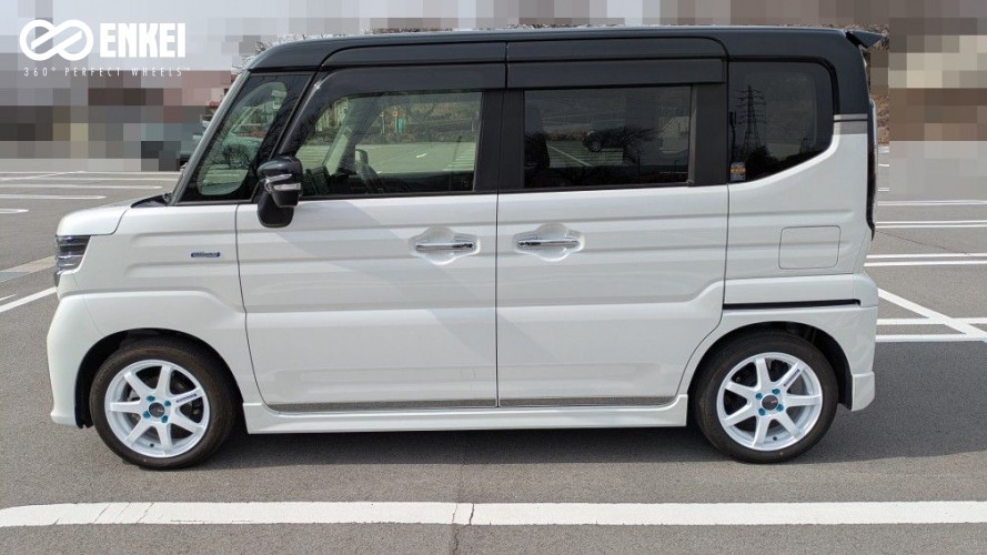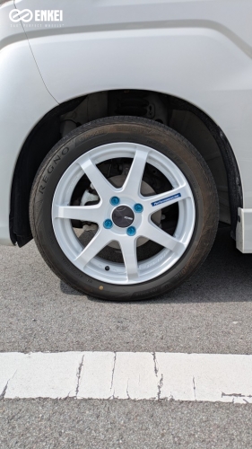 明色をおしゃれに履きたい願望でPF07+青ナットを選択。車検規定内確認済み。DATA:PF07-COLOR/15x5j/INSET45/4H-100PCD/P-White-15inch