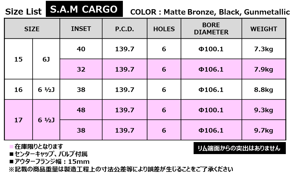 サイズ : 15inch / 16inch / 17inch(在庫限り)